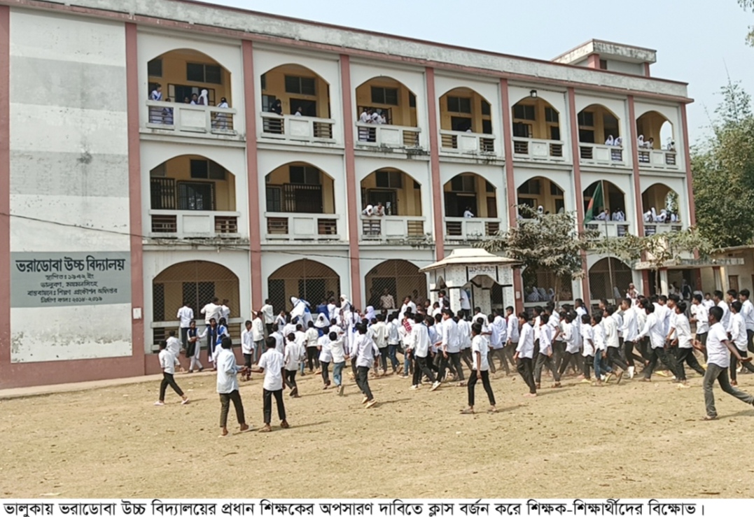 ষ্টাফ রিপোর্টার:- ময়মনসিংহের ভালুকায় প্রধান শিক্ষকের অপসারণ দাবিতে ক্লাশ বর্জন করে বিক্ষোভ করেছেন শিক্ষক ও শিক্ষার্থীরা। (২৮ ফেব্রুয়ারী) বুধবার সকালে