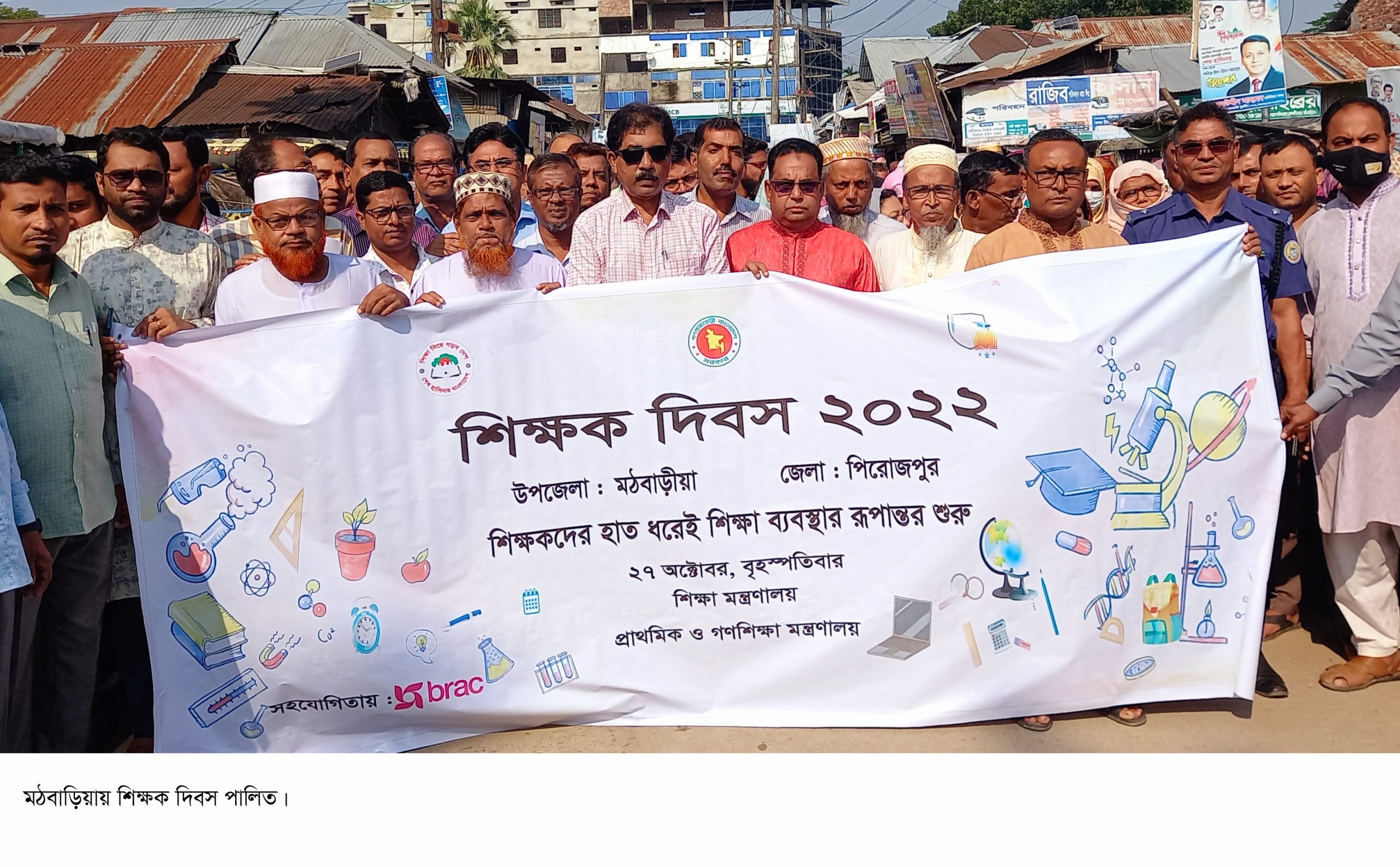 শাকিল আহমেদ,পিরোজপুর প্রতিধিনিঃ- ‘‘শিক্ষকদের হাত ধরেই শিক্ষা ব্যবস্থার রুপান্তর শুরু’’ এ প্রতিপাদ্যকে সামনে রেখে পিরোজপুরের মঠবাড়িয়ায় শিক্ষক দিবস পালিত হয়েছে।