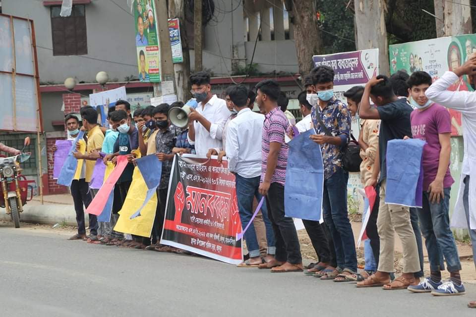 এসএসসি ২০২২ সালের সিলেবাস কমানোর দাবীতে ভালুকায় ছাত্রদের মানববন্ধন