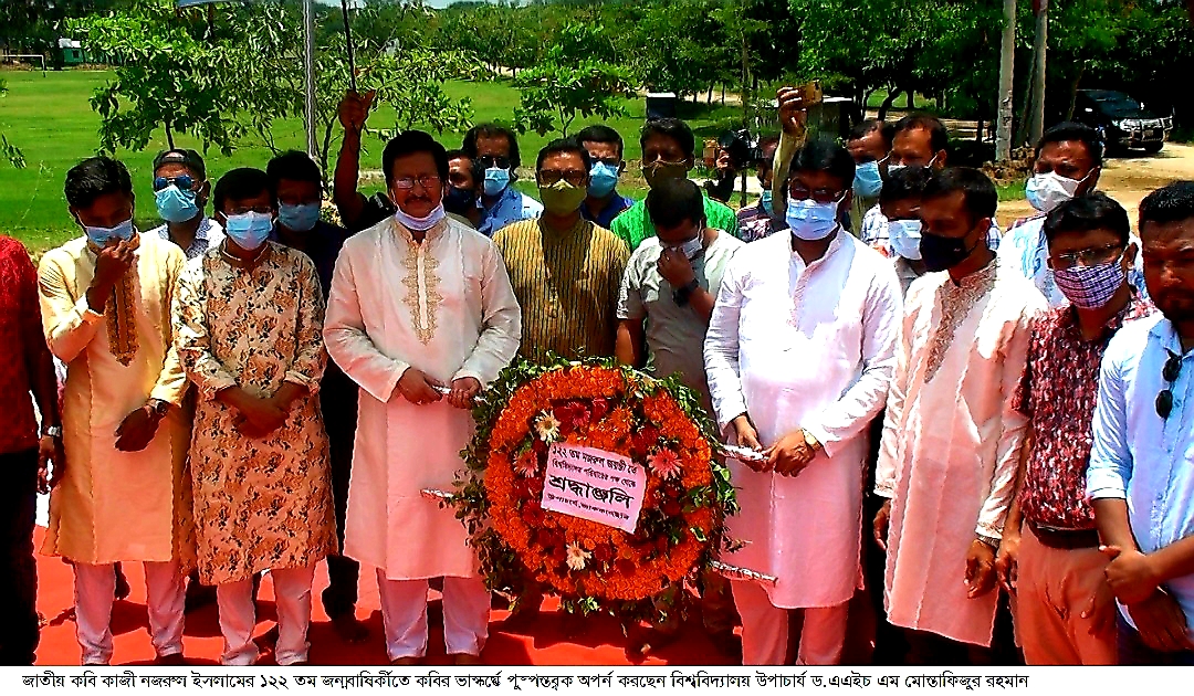জাতীয় কবি কাজী নজরুল ইসলামের ১২২তম জন্মবার্ষিকীতে কবি নজরুল বিশ্ববিদ্যালয়ে কবির ভার্স্কয উদ্বোধনও পুষ্পস্তবক অর্পন