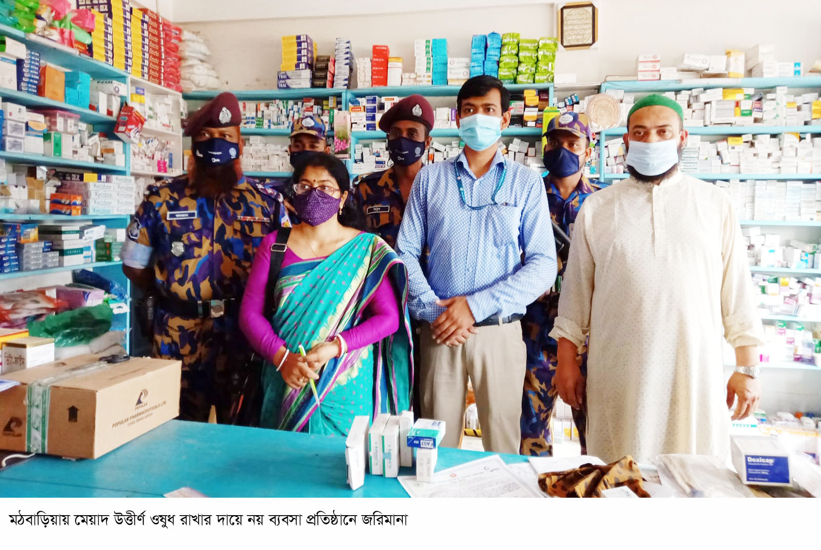 মঠবাড়িয়ায় মেয়াদ উত্তীর্ণ ওষুধ রাখার দায়ে নয় ব্যবসা প্রতিষ্ঠানে জরিমানা