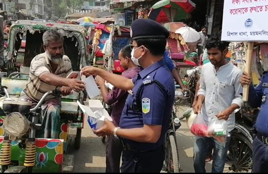 করোনা ভাইরাস মোকাবেলায় মাঠে নেমেছে ত্রিশাল থানার ওসি মাঈনউদ্দিন