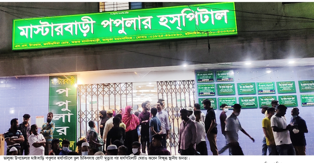 ভালুকায় পপুলার হসপিটালে ভুল চিকিৎসায় রোগী মৃত্যুর অভিযোগ