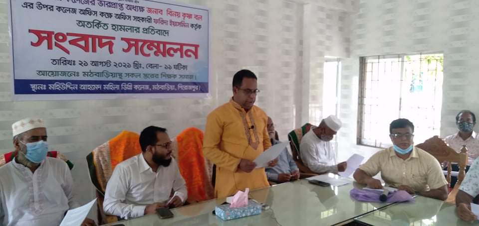 মঠবাড়িয়ায় কলেজ অধ্যক্ষকে জুতা পেটাকারী সেই অফিস সহকারীকে গ্রেফতারের দাবীতে সংবাদ সম্মেলন