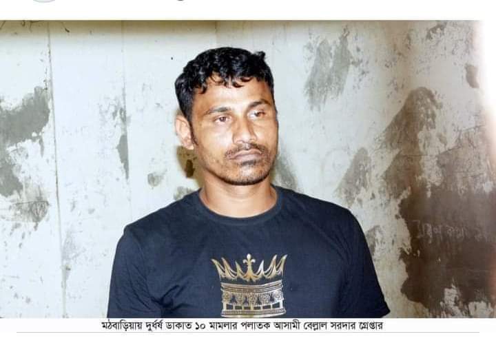 মঠবাড়িয়ায় দুর্ধর্ষ ডাকাত সর্দার ১০ মামলার পলাতক আসামী বেল্লাল গ্রেপ্তার