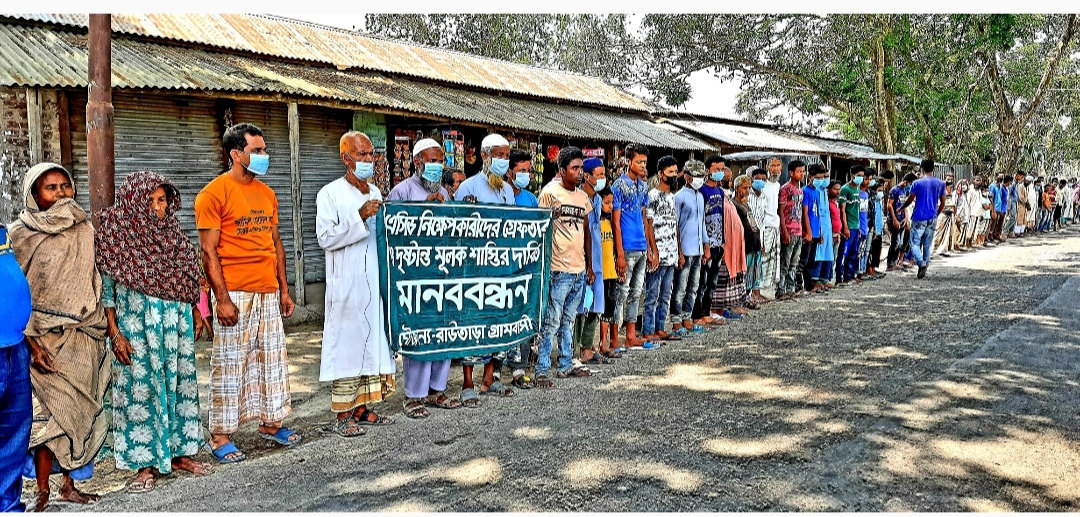 হিলিতে এসিড হামলাকারীদের গ্রেফতারের দাবিতে মানববন্ধন