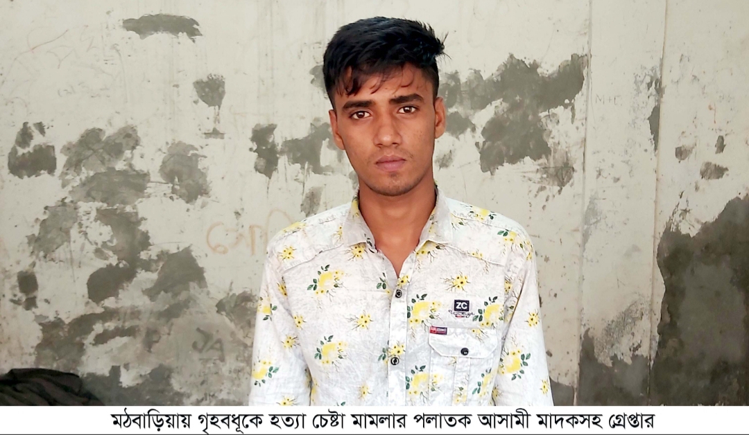 মঠবাড়িয়ায় গৃহবধূকে হত্যা চেষ্টা মামলার পলাতক আসামী মাদকসহ গ্রেপ্তার