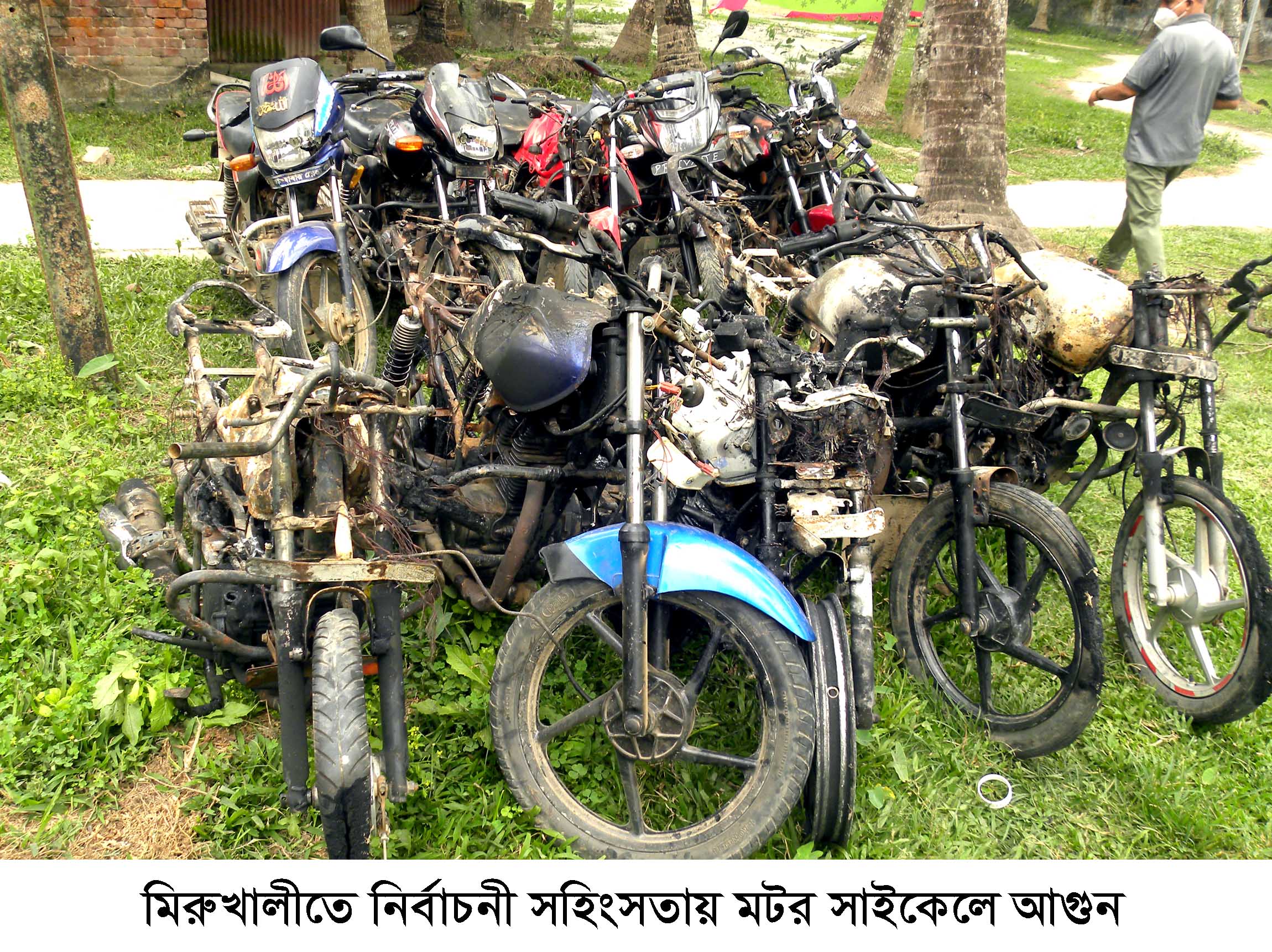 ১১টি মটরসাইকেল অগ্নিসংযোগ ও ভাংচুর মঠবাড়িয়ায় নির্বাচনী সহিংসতায় দুইজন গুলিবিদ্ধসহ আহত-২০