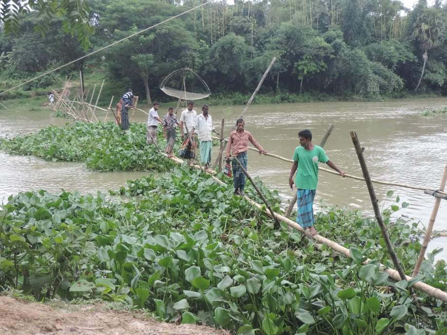 ভালুকায় বাঁশের সাঁকোতে নদী পারাপার