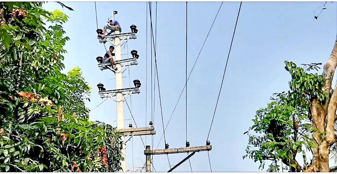 বাড়ির উপর দিয়ে ৩৩কেবি বিদ্যুৎ লাইন স্থাপনের চেষ্টা প্রতিকার পেতে এলকাবাসির থানায় অভিযোগ