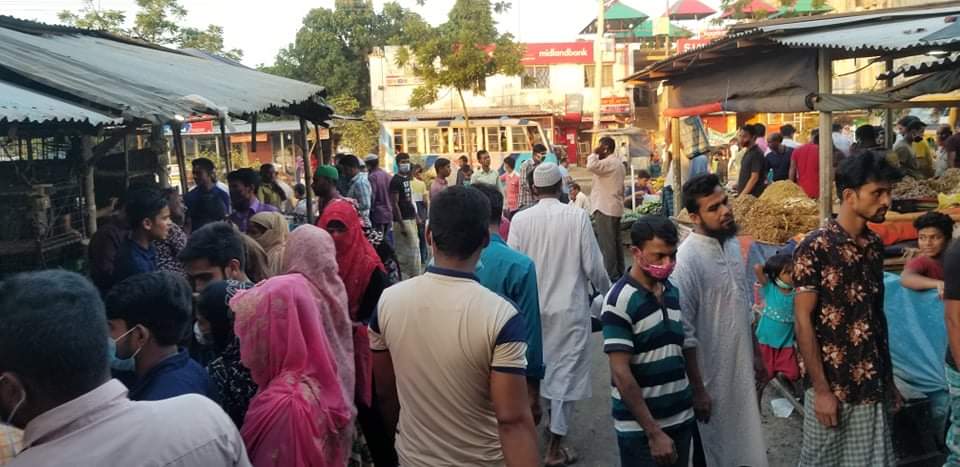 ষ্টাফ রিপোর্টারঃ করোনা সংক্রমণ ঝুঁকির মধ্যেও হাট বাজার গুলোতে জন স্রোত। সারা দেশে করোনা সংক্রমণে মৃত্যুর মিছিলের মধ্যেও ভয়াবহ সংক্রমণ