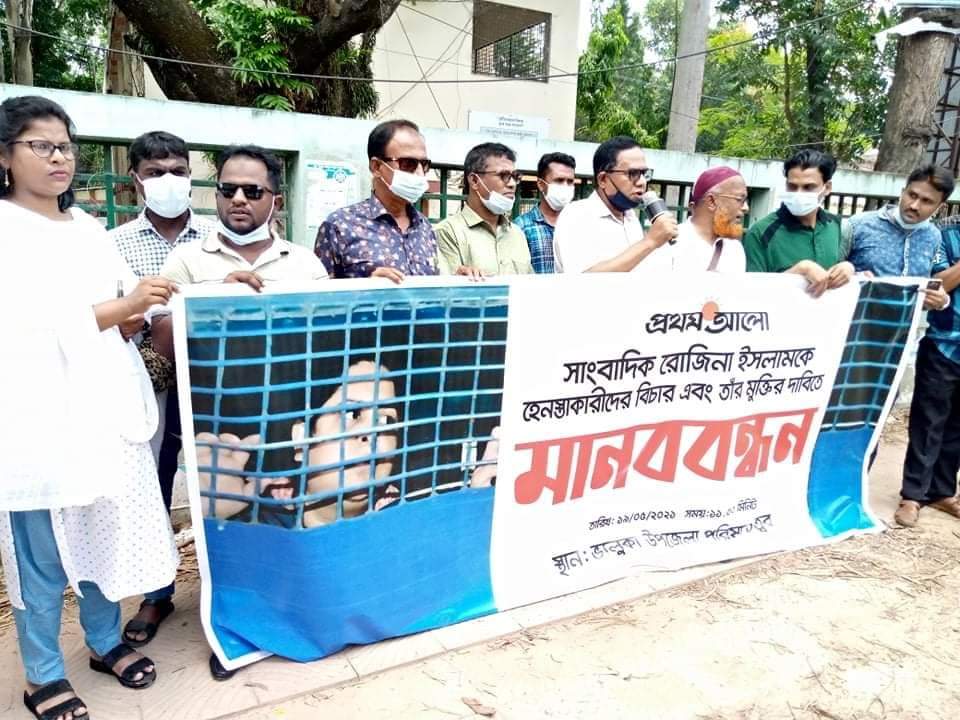 বিশেষ প্রতিনিধি: সচিবালয়ে প্রথম আলো সাংবাদিক রোজিনা ইসলামকে হেনস্তা করে উল্টো মিথ্যা মামলা দিয়ে হয়রানির প্রতিবাদে ময়মনসিংহের ভালুকা উপজেলার সাংবাদিকরা