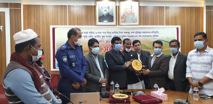 ঈশ্বরগঞ্জে বঙ্গবন্ধুর প্রতিকৃতি ফসলি জমিতে সেই কৃষক কাদিরকে সম্মননা প্রদান