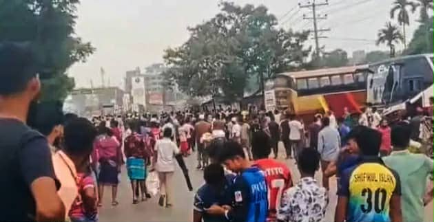 বকেয়া বেতনের দাবিতে ঢাকা-ময়মনসিংহ মহাসড়ক অবরোধ